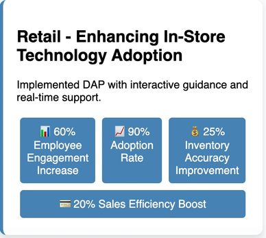 Solution: Implemented a DAP with interactive guidance, in-app prompts, and real-time support tailored to various employee roles.