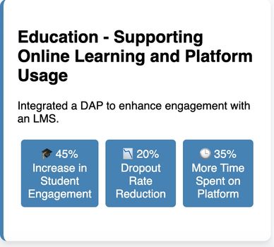 Solution: Integrated a DAP to offer on-demand tutorials, contextual help, and instructor feedback directly within the LMS.